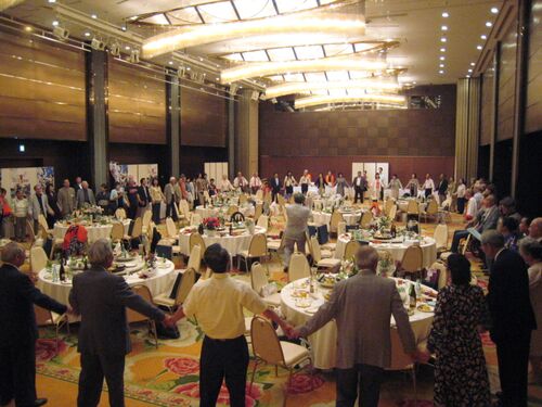 総会の最後は必ずよさこい総踊りと「南国土佐を後にして」を手を繋ぎ大きな輪になって精一杯の斉唱。