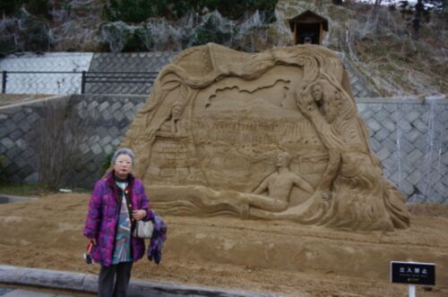 姫路豊富の工場下見終了して、弘子ちゃんが鳥取へ行かないと言い出した。砂丘イル―ジョン今日が開幕のニュースを見たらしい。 そこで、急遽播但道を福崎へ。 砂丘イリュージョンとかはしょぼかったが、砂の美術館は迫力満点。ビックリ仰天。